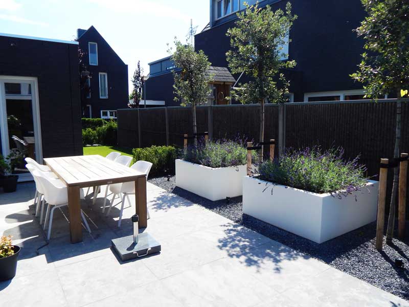 Een achtertuin die zo ingericht is dat kinderen er fijn kunnen spelen, maar dat er ook gezellig een borrel gedronken kan worden. Geen ontplofte kinderspeeltuin dus, maar vooral een gezellige gezinstuin met weinig onderhoud. Dat was de wens van deze klanten uit de Groote Wielen in Rosmalen. Vol enthousiasme heeft onze vakman een tuinontwerp gemaakt en hebben onze hoveniers de wens van deze klanten gerealiseerd met een fantastische tuinaanleg.
