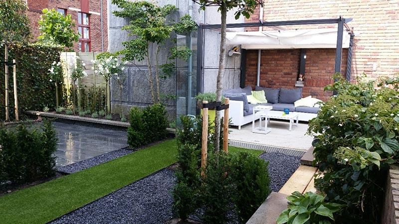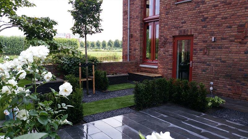 Een tuinontwerp voor een stadstuin binnen een kasteelpark in Engelen. In kasteelpark Haverley in ’s-Hertogenbosch-Engelen werden in de laatste twee decennia acht moderne kasteelgebouwen gerealiseerd. In elk ervan is een diversiteit aan appartementen terug te vinden.