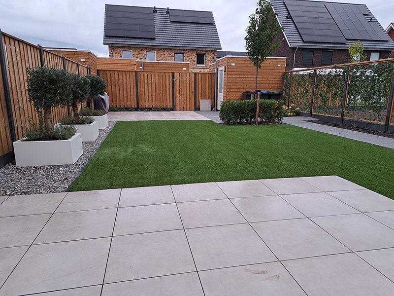 Onderhoudsarme, kindvriendelijke tuin met automatische beregening in Rosmalen