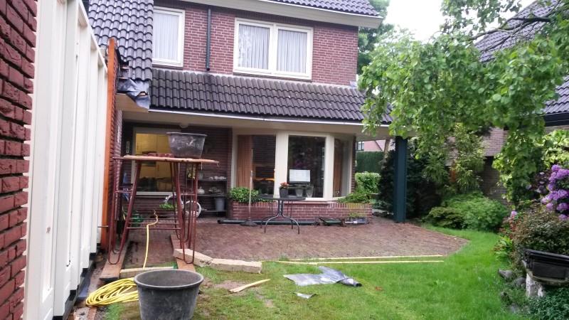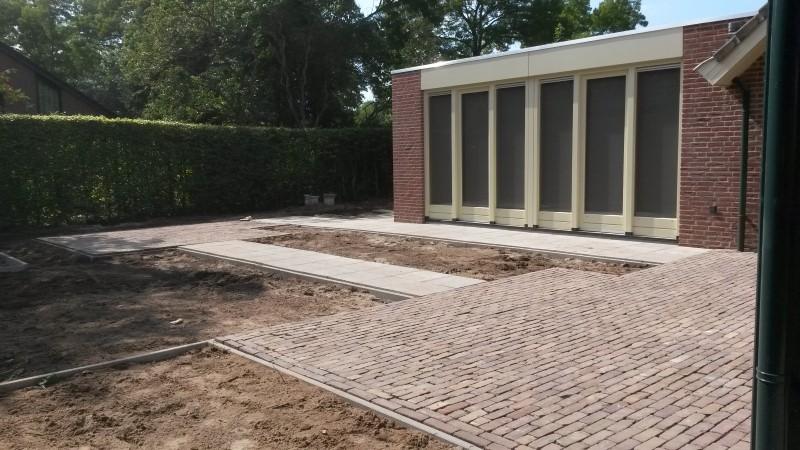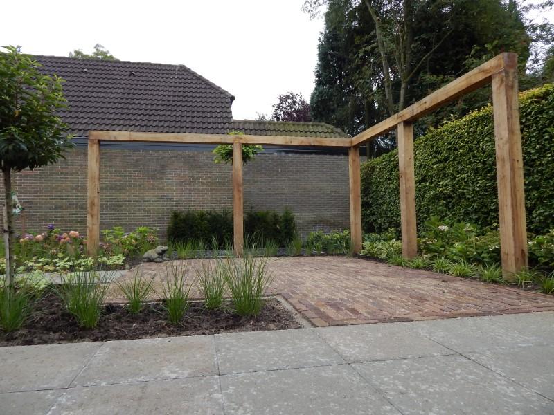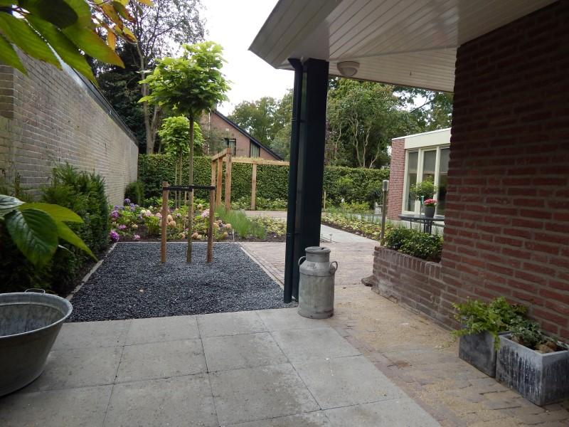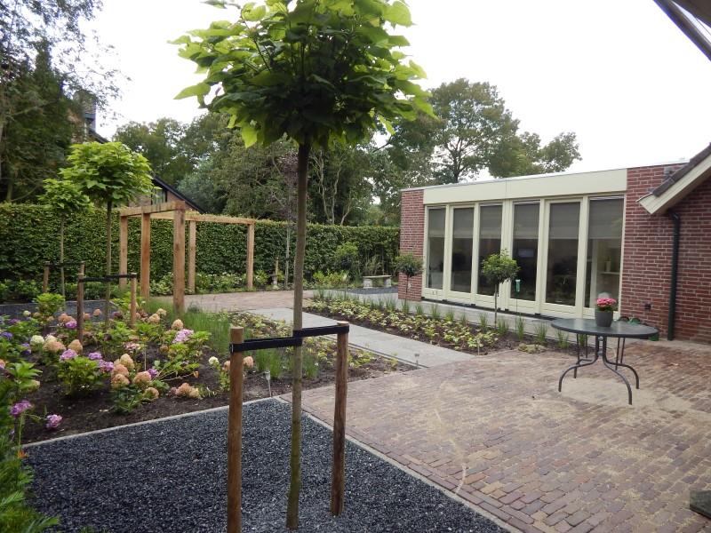 De eigenaren van deze vrijstaande woning met kantoor aan huis kregen een mooie nieuwe aanbouw voor hun kantoor. De tuin ging daardoor deels op in de bebouwing en dat maakte een nieuwe indeling van de tuin noodzakelijk. Het was een mooie opgave om van de nood een deugd te maken, een kleiner oppervlak, maar wel helemaal opnieuw in te vullen.